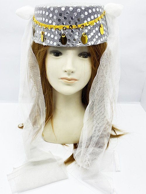 Beyaz Duvaklı Altın Pul İşlemeli Kına Fesi
