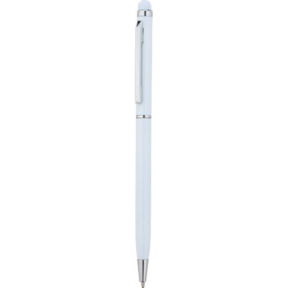 14 cm x 1.5 cm boyutundaki bu şık beyaz tükenmez metal kalem, kaliteli metal malzemeden üretilmiştir. Ergonomik tasarımı sayesinde rahat yazım sağlar. Kalem, dokunmatik ekranlı cihazlarla uyumlu olup, arkasında bulunan silikon başlık sayesinde her cihazda rahatlıkla kullanılabilir. Tükenmez uç özelliği ile uzun süre kullanılabilir, dayanıklı ve kaliteli bir yazma deneyimi sunar.