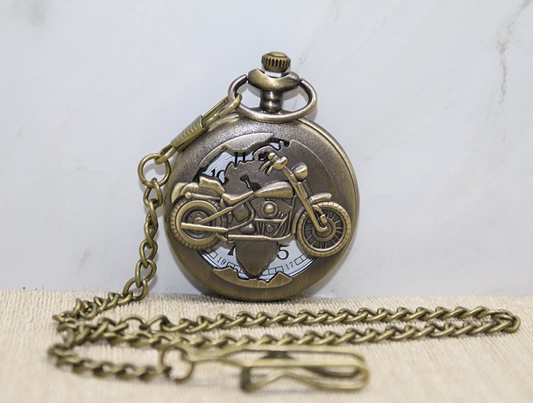 MOTOR TASARIMLI KÖSTEKLİ SAATÜrün ÖzellikleriMotor tasarımlı köstekli saat, vintage sevenler ve motosiklet tutkunları için özel olarak tasarlanmıştır. Bronz kaplama metal gövdesi, dayanıklılığı ve nostaljik dokusuyla dikkat çeker. Ön kapağında kabartmalı motosiklet figürü yer almakta olup, açık penceresi sayesinde iç mekanizmayı kısmen gösterecek şekilde tasarlanmıştır. Kolay açılır kapanır kapağı ve zinciri ile şık bir aksesuardır. Koleksiyoncular ve klasik saat severler için mükemmel bir seçimdir.Paket İçeriği1 Adet Motor Tasarımlı Köstekli Saat
